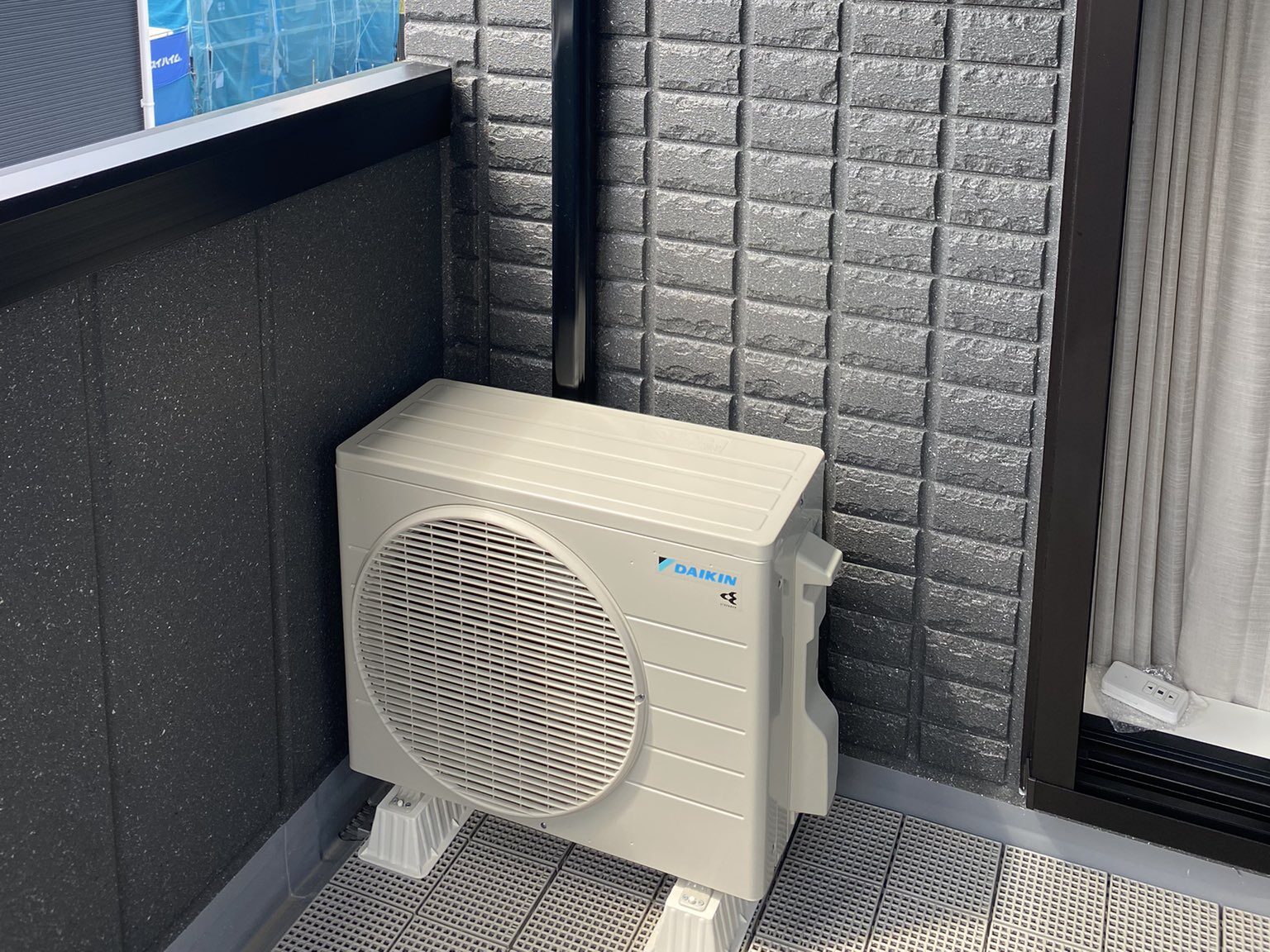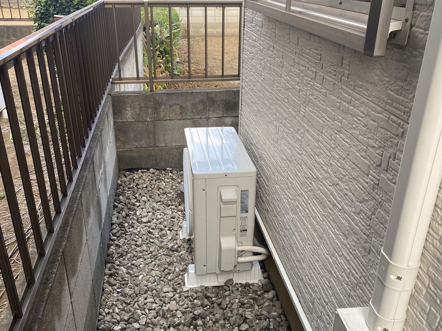 建物が密集している場所に私のアパートがあり、何社かのエアコン屋からは断られていたのですが、町のエアコン屋さんに相談したところ、「お隣の敷地の許可さえお取りいただければ可能です。」とのことでお願いしました。