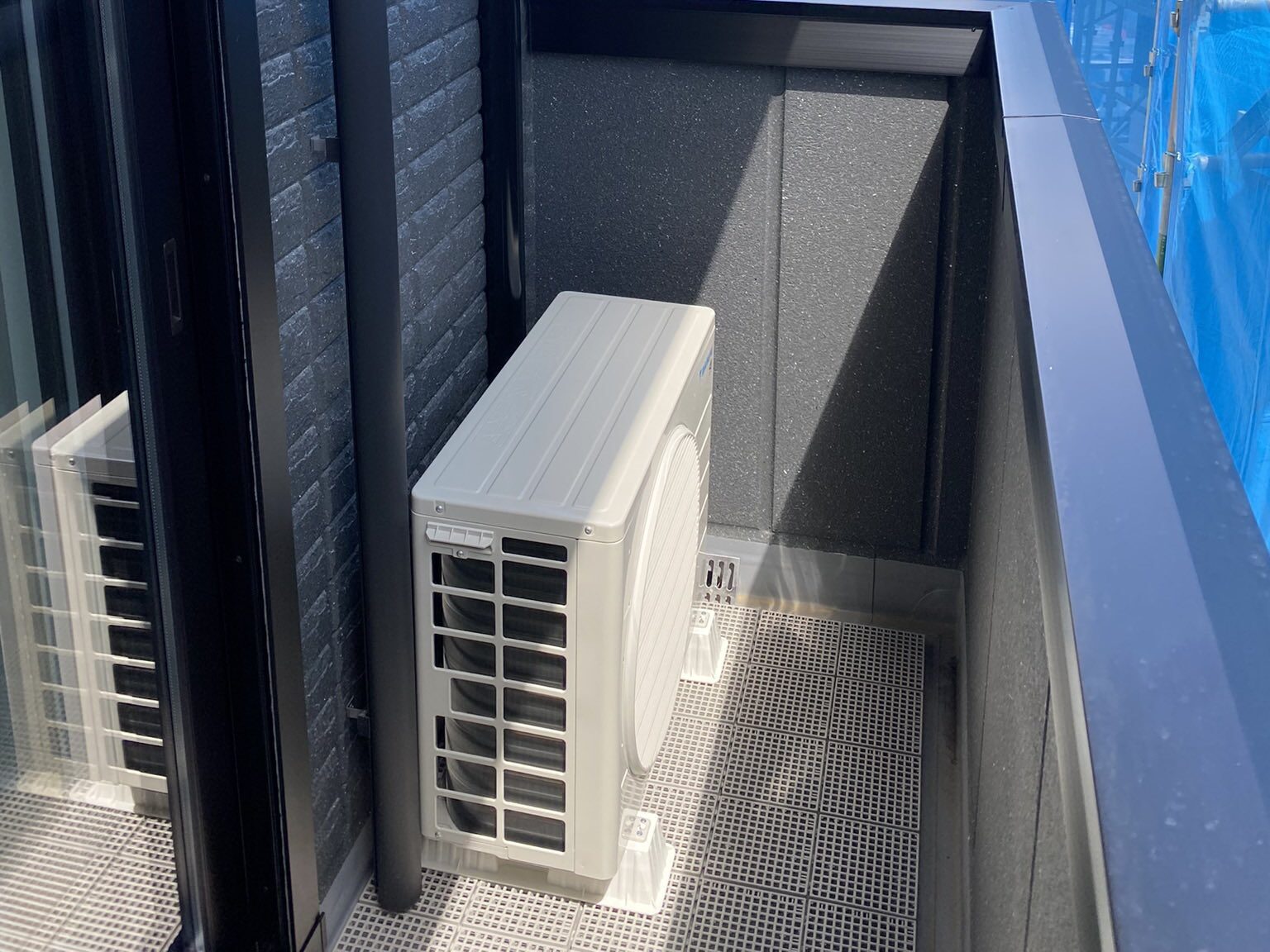 新築特化店だからこそのこだわり、スリーブなど基本施工当たり前ですが、美観にもこだわり、外壁や配管カバーの色に応じて、カバーを途中から、違う色に変更、テープの色変更の対応可能、また、室外機の風の向きなどもご近所様に配慮した位置の設置もご案内いたします。