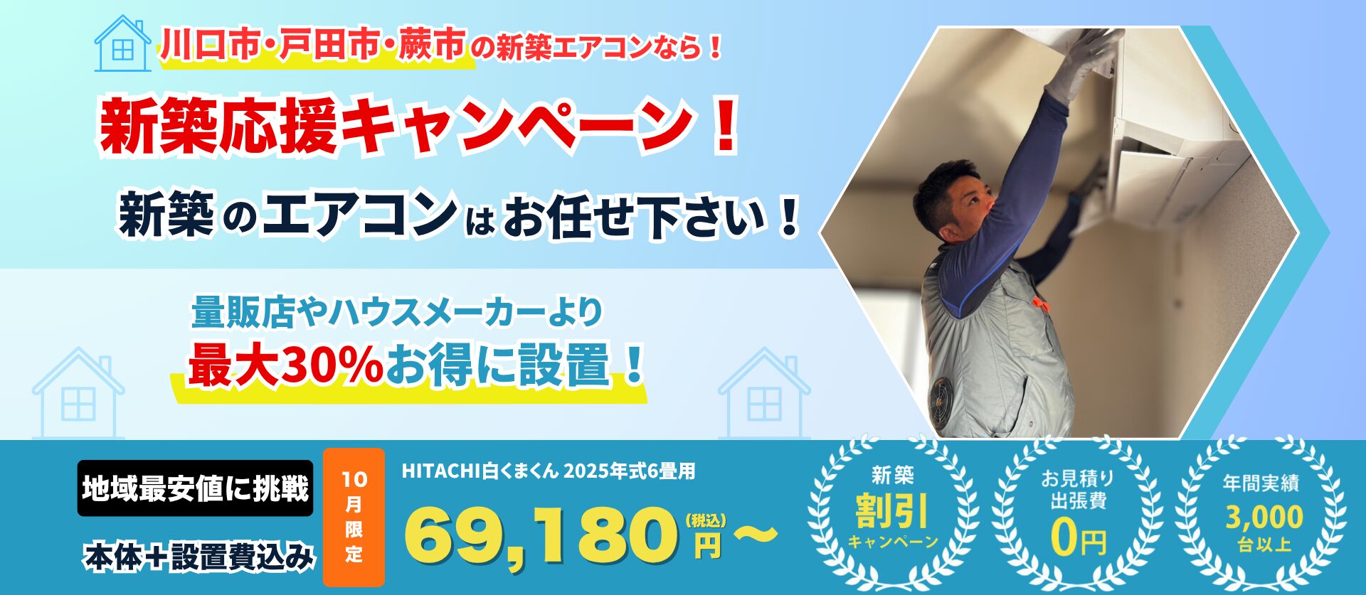 もともと大手家電量販店やハウスメーカーの下請け・業務用エアコンの工事を経験し、年間1,000件以上の施工実績がございます。