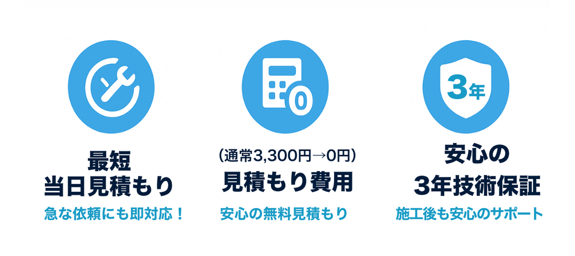 工事後3年間の技術保証付きで、万が一の不具合にも迅速対応します。